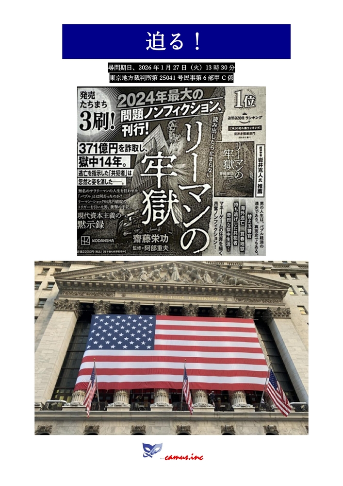 「魂の系譜 – The Legacy of Spirit」 NEWS 道は続く、続けなければならない。向こうに、未だ語られぬ「物語」が待っている #再生、#甦、#自己、#地域、#日本、#ロスチャイルド、#金融、#株式、 闇の中をたっぷり覗き込み、ささやかな光、微かな光を探す、それもまた人間であればこそできる、そう信じたい、 人間の無限の可能性、そこに人間らしさ、個人の尊厳がある 齋藤栄功オフィシャルサイト〜カミュ〜 2026/01/22 08:54 フォロー URLをコピーする 報告する