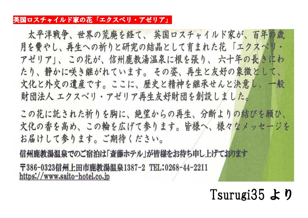 ロスチャイルド家の花―エクスベリ・アゼリア NEWS #再生、#甦、#自己、#地域、#日本、#ロスチャイルド、#金融、#株式、 #camus、#KagamiCamusaito、#リーマンの牢獄、#再生、#甦、 #花、#フラワー、#地域、#ロスチャイルド #上田、#歴史、#信州 道は続く、続けなければならない。向こうに、未だ語られぬ「物語」が待っている 齋藤栄功オフィシャルサイト〜カミュ〜 2026/01/24 19:25 フォロー URLをコピーする 報告する